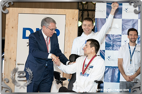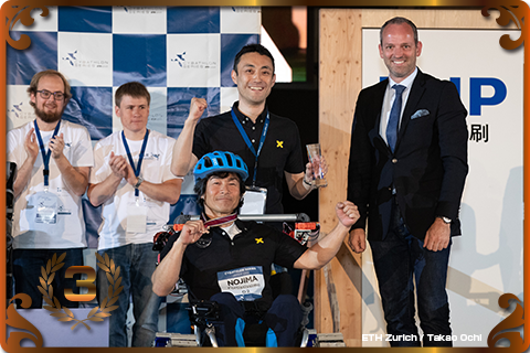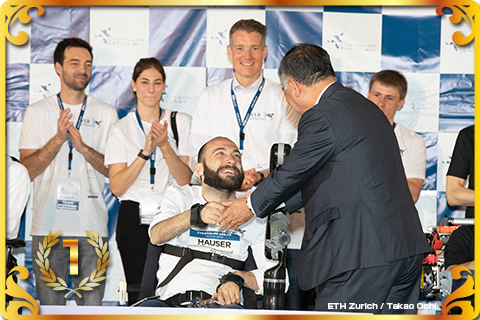 ![]() 1st PLACE Team HSR Enhanced (Switzerland) with Mr. Osamitsu Yamada, Chairman of the CYBATHLON Wheelchair Series Japan 2019 |
